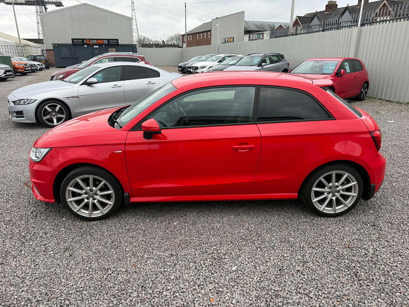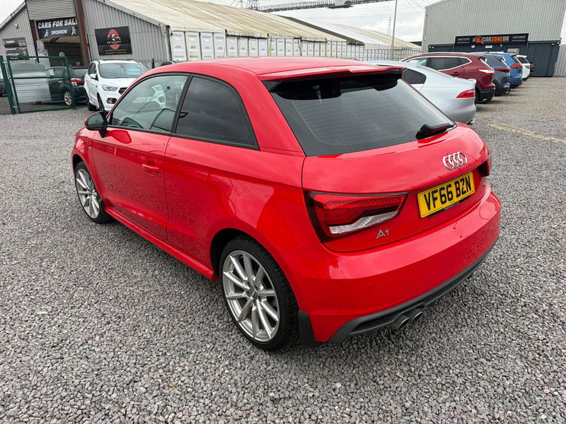 A well presented Audi A1 S line finished in red, offering strong 1.4 petrol performance, sharp handling, and sporty S line styling in a compact three door hatchback.